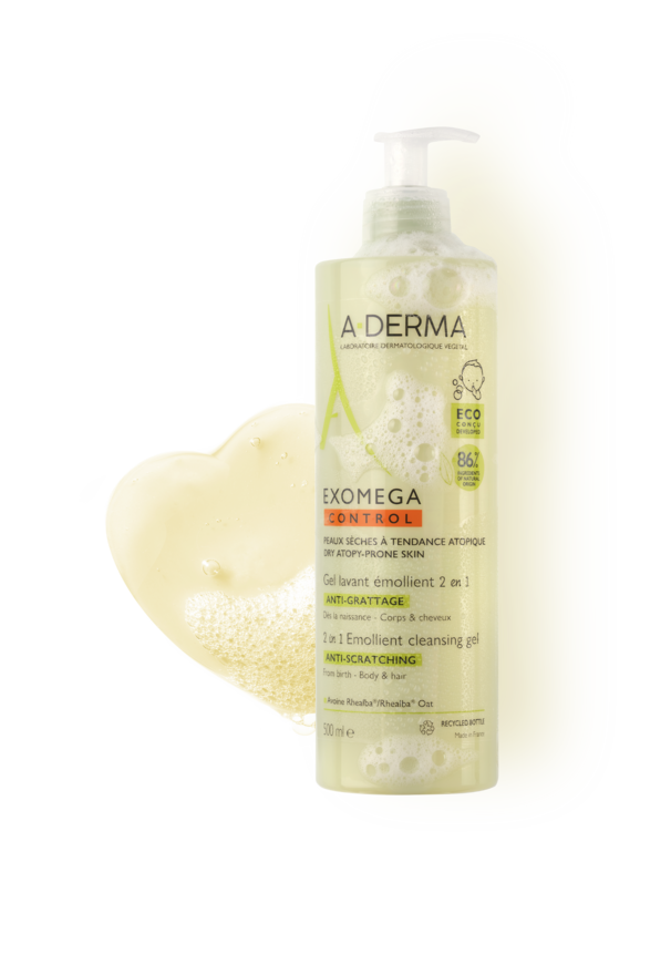 Adatto fin dalla nascita, EXOMEGA CONTROL Gel Detergente Emolliente 2 in 1 deterge (viso, corpo, capelli), lenisce nel 98%¹ dei casi e protegge la pelle secca e a tendenza atopica grazie alla sua formula BIODEGRADABILE* che contiene l'86% di ingredienti di origine naturale.